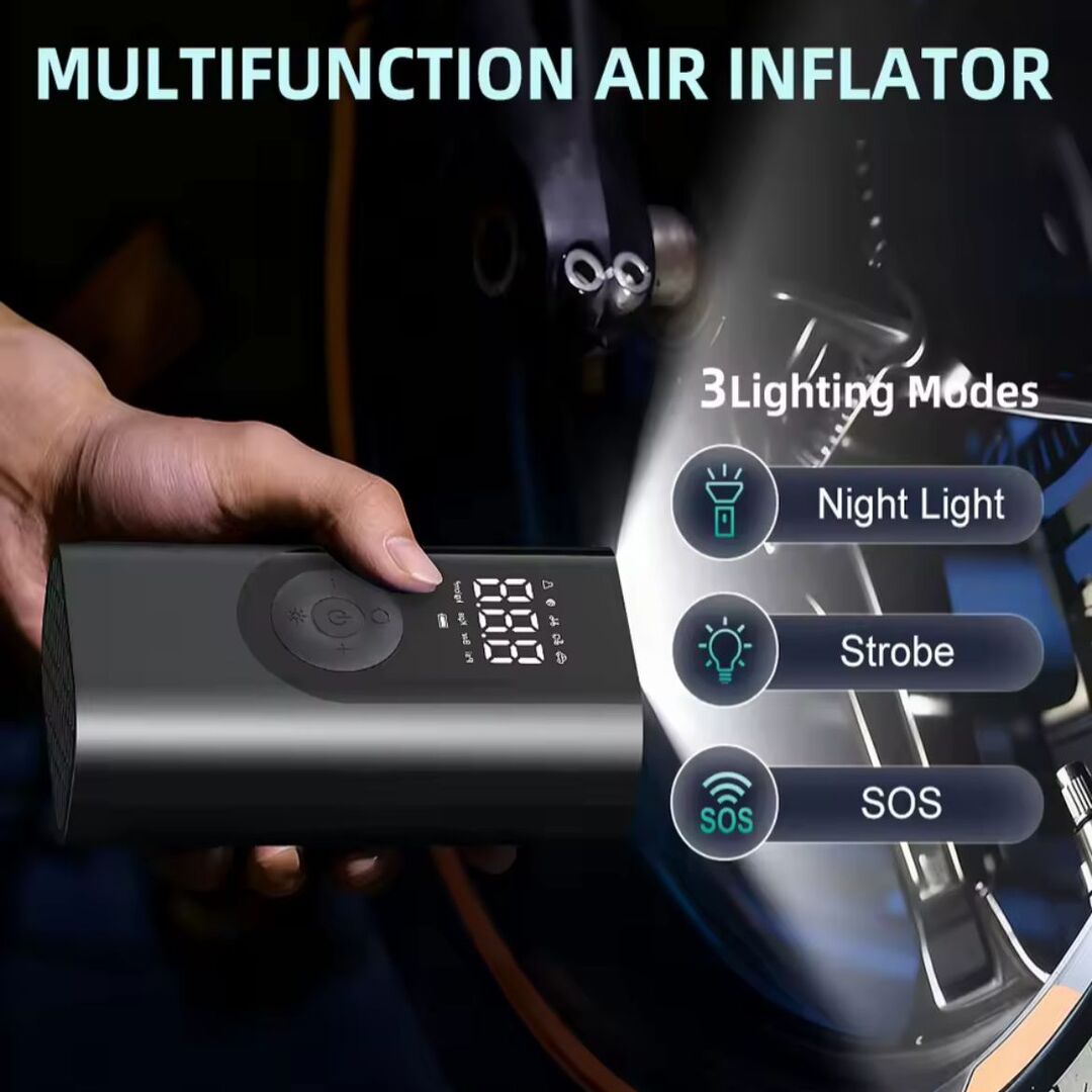 AirBoost geeft je de vrijheid om overal en altijd je banden of sportartikelen op te pompen zonder gedoe met grote apparaten of tankstations. Deze krachtige draagbare compressor levert snelle luchtdruk wanneer jij het nodig hebt en past moeiteloos in je tas, dashboardkastje of rugzak. Ideaal voor auto's, fietsen, motoren, sportballen en dagelijkse noodgevallen.