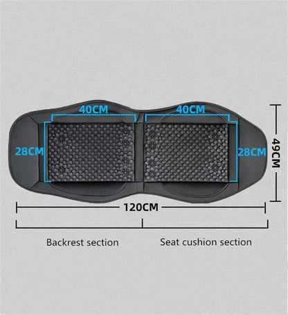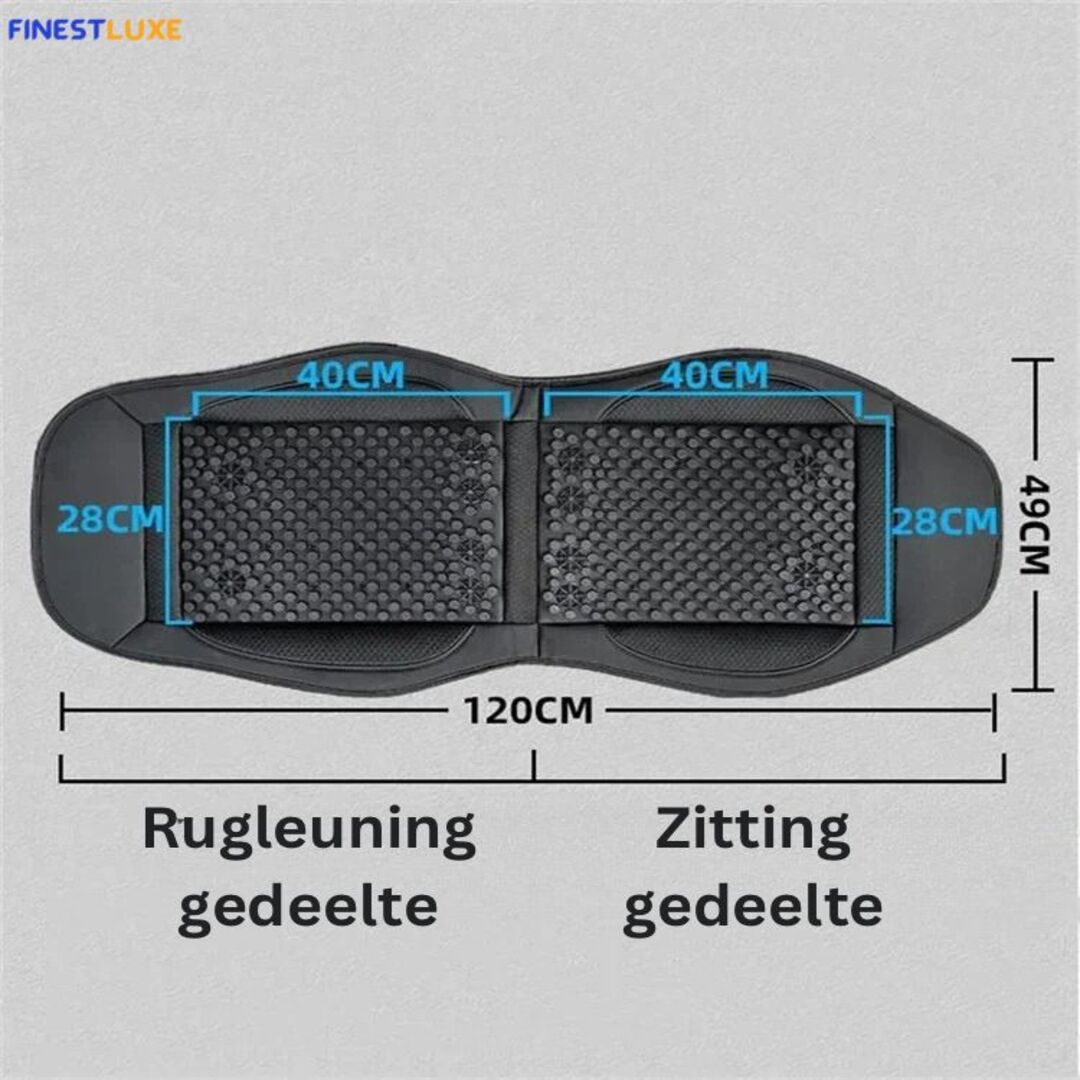 Afmetingen: 110 × 45 cm Voeding: USB-aansluiting (5V) Aantal ventilatiestanden: 3 Kabellengte: 150 cm Materiaal: Ademend mesh & PU-leer Gewicht: ca. 800 g Kleur: Zwart met grijze accenten