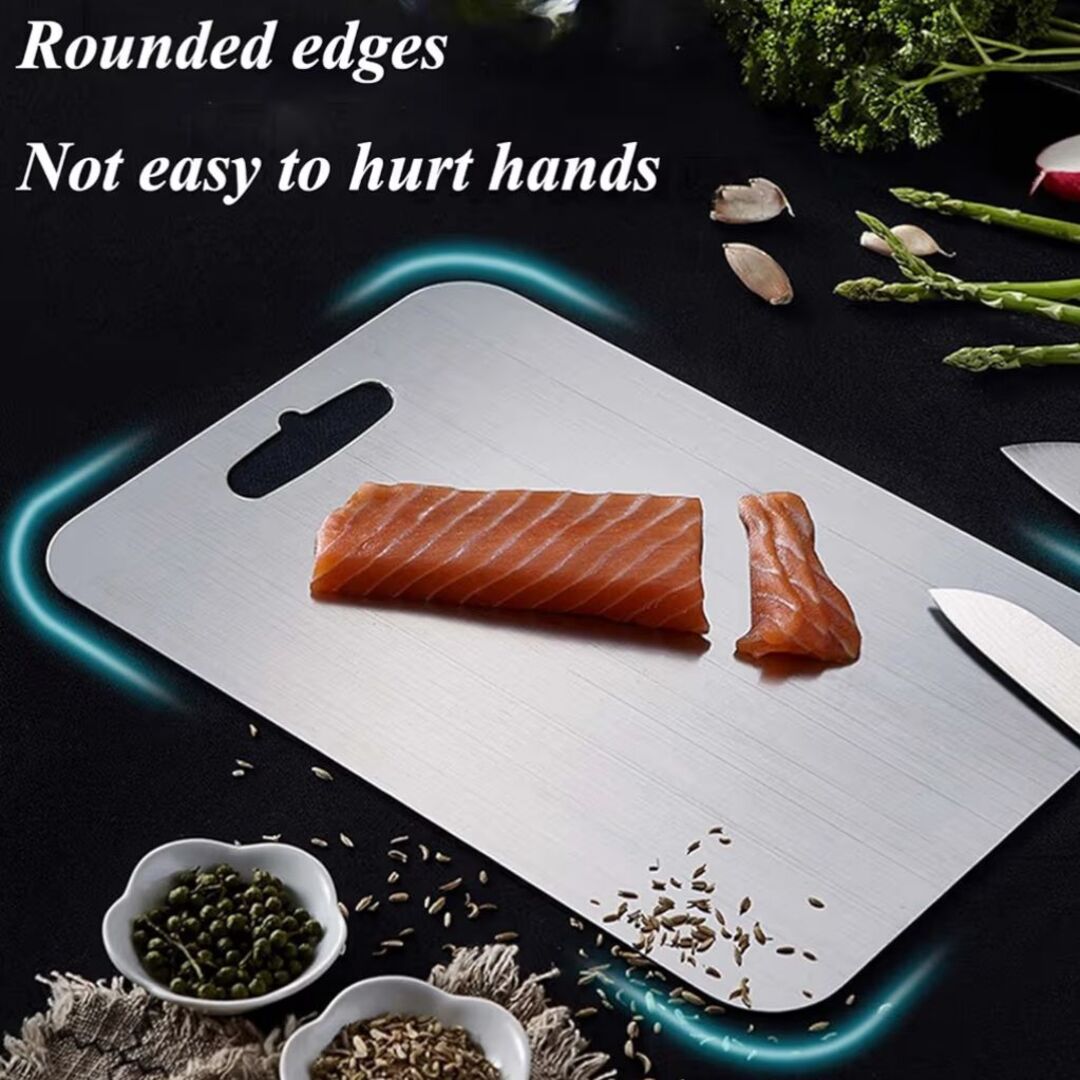 De CleanCut snijplank is ontworpen voor het bereiden van maaltijden op een veilige en hygiënische manier. Gemaakt van 100% roestvrij staal, voorkomt deze snijplank de groei van schimmel en microplastics, zodat je maaltijden vrij zijn van schadelijke stoffen.