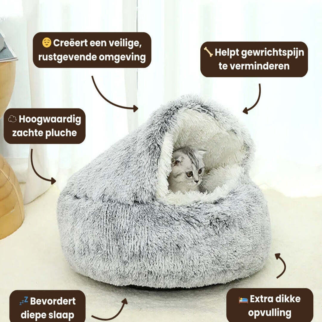 Met SafeNest geef je je huisdier een warme, zachte plek waar het zich direct veilig voelt. Dit geborgen slaapnest is ontworpen om rust en comfort te bieden, zodat je huisdier zich kan terugtrekken en volledig kan ontspannen. Ideaal voor katten en kleine honden die gevoelig zijn voor prikkels of stress.